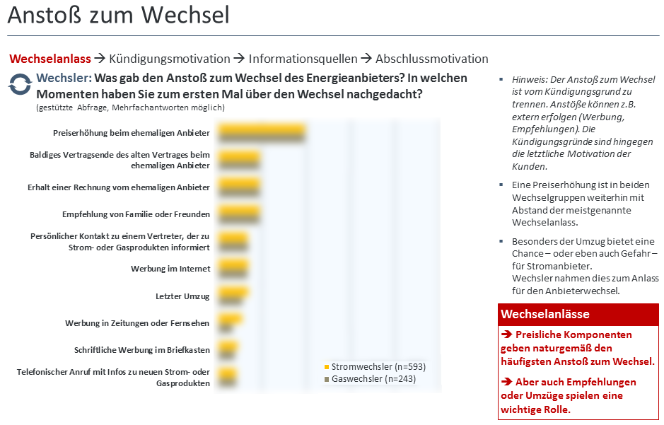 Mit der Vertriebskanalstudie Energie wird jährlich anhand von Befragungen mit echten Strom- und Gaswechslern der Wechselprozess vom Anlass bis zum Abschlusskanal transparent gemacht.