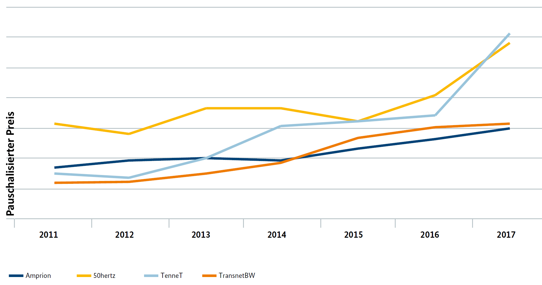 Für einen Haushalt mit einem Verbrauch von 3.500 kWh pro Jahr stiegen die Übertragungsnetzentgelte im Jahr 2017 um bis zu 6,3 Prozent in den Netzgebieten von Amprion und TransnetBW während in den anderen Übertragungsnetzen mit einem Rückgang um bis zu 3,2 Prozent zu rechnen wäre. Industriekunden auf Höchstspannungsebene würden um bis zu 72 Prozent stärker belastet bzw. um bis zu 28 Prozent entlastet.