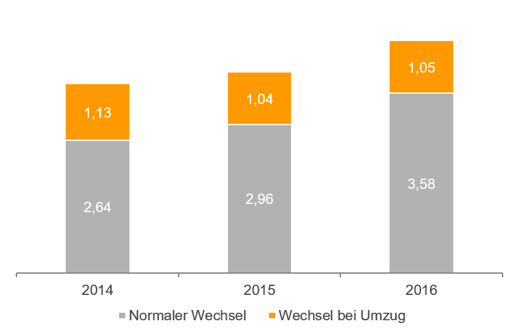 Wechselvorgänge im Strommarkt (absolut in Mio.)